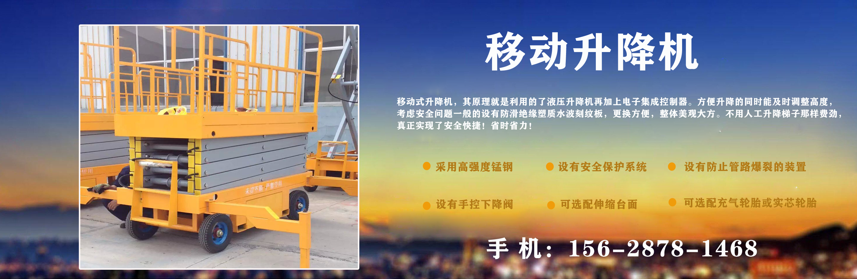濟(jì)南中升機(jī)械制造有限公司主營(yíng)移動(dòng)升降機(jī),小型移動(dòng)升降機(jī),移動(dòng)式升降機(jī),移動(dòng)剪叉升降機(jī),移動(dòng)剪叉式升降機(jī)等產(chǎn)品,信譽(yù)良好,歡迎前來(lái)咨詢訂購(gòu)! 在銷(xiāo)售上,尊重每一個(gè)客戶,做到保質(zhì)、保量及時(shí)供貨;在售后服務(wù)上,以較短的時(shí)間,用較快的速度解決,終身追蹤服務(wù)?! 」臼冀K以“品質(zhì)為本,服務(wù)至上”為公司宗旨。致力于提供高品質(zhì)的產(chǎn)品,完善的服務(wù),快捷的供貨,無(wú)論您身處何方,都能感受到我們的優(yōu)良服務(wù)??蛻糁辽希\(chéng)信為本?! g迎各界朋友來(lái)電,來(lái)函垂詢,選購(gòu)!...